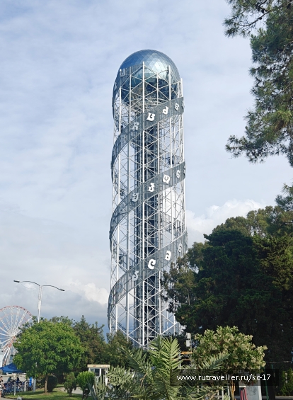Башня грузинского алфавита – это абсолютно новая достопримечательность Батуми, уже ставшая символом города. Построенная в 2012 году по проекту испанского архитектора Альберто Доминго Кабо, конструкция представляет собой подобие клеточного ДНК, нуклеотидами в котором являются буквы из грузинского алфавита. Находится это необычное сооружение в Батумском «Парке чудес».