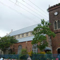Здание церкви построено из красного кирпича и состоит из главного зала, к которому пристроена прямоугольная двухуровневая башня. Церковь имеет строгий внешний вид, не содержащий никаких лепных украшений.