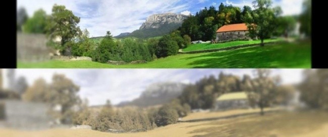 Как один и тот же пейзаж видят люди и кошки? Офтальмологи и ветеринары консультировали автора этих фотографий, Николая Ламма, и получилась серия снимков, на которых вверху – то, что видит человек, а внизу – возможности зрения кошек.Как выяснилось, зрение человека днем острее в 10 раз. Кошка не различает четко предметы на расстоянии более 6 метров. А вот ночью ее зрительные возможности лучше наших в 6-8 раз. Кроме того, кошачье поле зрения шире, чем у человека, на 20 градусов, поэтому кошка видит больше объектов по бокам, чем мы. На фотографиях Ламма верхнее изображение ограничено черными полосами, как и поле зрения человека.Вопреки распространенному заблуждению, что мир для кошек серый, кошки видят цвета, но не так, как человек.