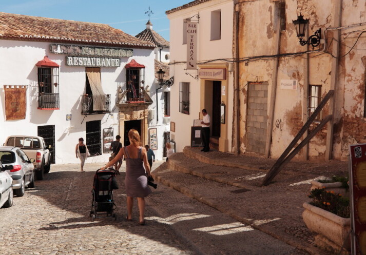 вместе( и немного в сторонке) с бесчиленными экскурсионными группами, говорящихми на разных языках, в том числе и на японском и китайском. Небольшой совет: если вы приехали в Ронду на автобусе - позабодьтесь об обратном билете. перед отходом автобуса их может не оказаться. не поленитесь выйти из туристической части Ронды и дойти до современной части города, чтобы приобрести прекраснейшего вина, цены на которое здесь как минимум в 2-2, 5 раза ниже,чем в историческом центре.