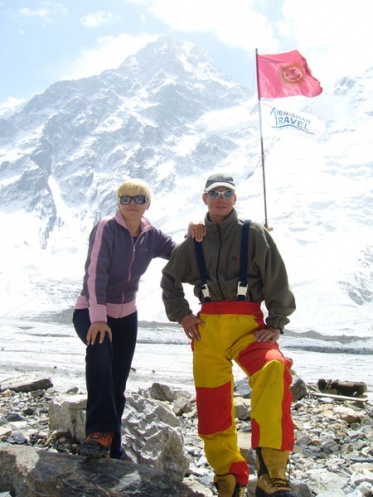 Нет, на саму вершину я не поднималась, как мой муж, да у меня и не было такой цели. Конечно, я реально смотрела на вещи и поставила себе задачу доползти хотя бы до промежуточного Лагеря 2, что на высоте 5500-5600 метров, что сравнимо с вершиной Эльбруса. Мой супруг до знакомства со мной занимался, вообще-то, спелеологией. Говорит: «сама меня альпинизмом заразила». Для начала он поставил себе цель подняться на Эльбрус, причем зимой. И он добился своей цели со второй попытки (2007 год), причем в одиночку. Одновременно он понял, что ему катастрофически не хватает технического опыта, и стал искать путевого инструктора, чтоб научил его уму-разуму. И нашел-таки, не в родной Уфе, не в соседнем Екатеринбурге, а в Интернете, причем - самого Дмитрия Павленко. Зимние учебно-тренировочные сборы в Ала-Арче (2008 год) под его руководством прошел успешно и почувствовал, что способен на нечто более серьезное. Хан-Тенгри - вот что нужно, чтоб попробовать свои силы «на высоте». И именно с севера, хоть там маршрут и физически, и технически более трудоемкий, но зато не зависишь от непредсказуемых лавин, как на южной стороне маршрута. Физическая подготовка была хорошая, но, не останавливаясь на достигнутом, он стал усиленно тренироваться и как «локомотив» потянул меня за собой. Мы занимались в фитнес-центре, в том числе и на скалодроме, также бегали по пересеченной местности на спорткомплексе «Биатлон». Постепенно я привыкала к мысли, что тоже смогу поехать в горы и попробовать хотя бы «прикоснуться» к их вечной красоте.