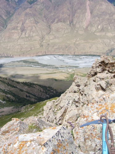 Рустем уходит на «Петьку», т.е. плечо пика Чапаева, я остаюсь здесь. Сушу палатку, спальники, вещи. По уму, Рустему надо бы переночевать на «Петьке» и валить со мной в Базлаг. Но тут группа алма-атинцев собирается на перемычку и завтра на штурм, думаю, Рустем рванет с ними за компанию, тем более, что погода позволяет. Волнуюсь только, что он не взял с собой пуховик, из-за того, что он тяжелый.