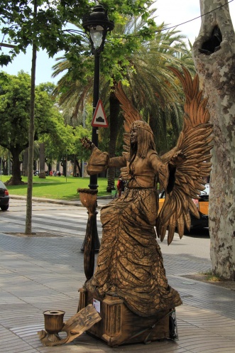 Постепенно вниз спускались к порту, на Рамбле очень много интересных живых статуй.