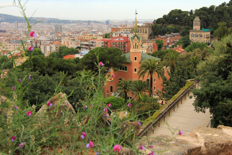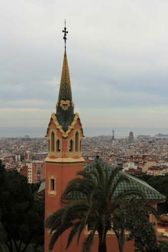 Затем спустились в метро на станцию Luceu и поехали в парк Гуэль, проект А.Гауди. Это целый комплекс построек, спроектированный по заказу одного магната, который намеревался создать здесь городок-сад из домов для своих родственников. Но замысел был осуществлен лишь частично. Вход бесплатный на территорию. Приятное место для прогулок, интересная архитектура, также открываются красивые виды на Барселону, гору Тибальдо с его верхней точки.