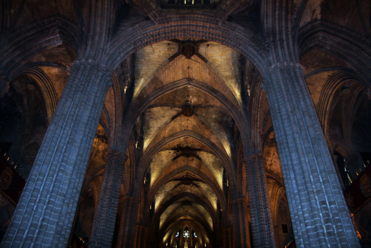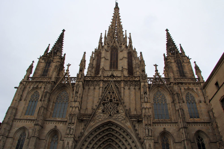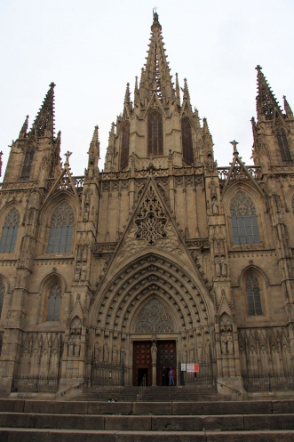 Начинается он за площадью Placa Nova, справа будет кафедральный собор Барселоны (строительство было начато в 1298 г., основные работы закончены в 1448 году) Собор посвящен св. Евлалии, там можно увидеть 29 капелл, богато украшенные резьбой, и главный алтарь. В его внутреннем дворике находятся гробницы состоятельных горожан. Далее просто гуляли по кварталу, мрачновато серое место, особенно на фоне серого неба немного угнетало.