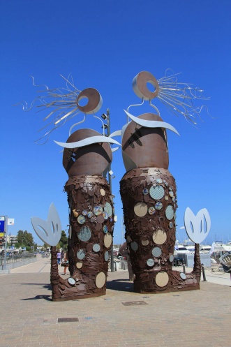 Затем посидели у моря в районе морской Рамблы (Rambla de Mar). Тут расположен мост, ведущий от площади Порталь де ла Пау к торгово-развлекательному центру «Маремагнум» (Maremagnum).