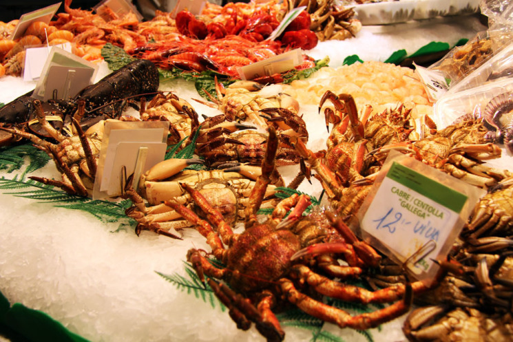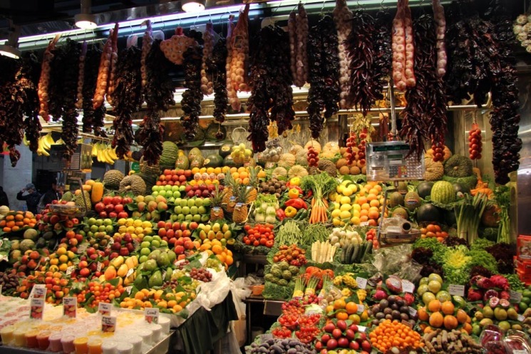 Около собора спустились в метро, доехали до станции Diagonal (синяя ветка), от нее перешли на зеленую ветку и вернулись на станцию Luceu. Так опять оказались на бульваре Рамбла. Еще раз зашли на рынок Баскерия, народу в районе 13.00 было в разы больше. Прикупили черешню, чтобы поесть на набережной. По дороге пообедали в кафе (средняя цена паэльи 14 евро), но в следующий раз бы поела в районе музея истории Каталонии, в р-не Барселонетты, там такие милые ресторанчики с морепродуктами. Но ценник скорее всего еще выше бы был.