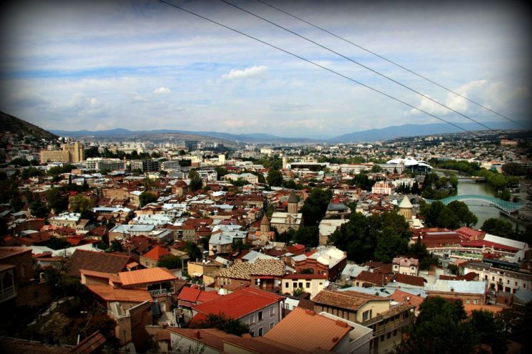 Итак, на второй день мы идем про проложенным тропам к Мосту Мира, и уходим в сторону Шардена. Шарден это улочка с бесконечными кафешками, ресторанами, барами, кальянными и хинкальными. Идем куда глаза глядят. Глаза у моей подруги глядели вверх. Вверху крепость Нарикала. Поднимаемся пешком на гору, гуляем по смотровой площадке, доходим до Матери Грузии… Оооочень эффектная женщина. Там канатная дорога. Спустится бы на канатке, да вот беда. Подруга боится высоты. Я оказалась чуть чуть дипломатом и все таки уговорила ее на спуск, пообещав не раскачивать кабину. Это было первым героическим преодолением боязни высоты, но она еще не подозревала, что ждет ее в лунопарке в Кобулети. Но об этом позже. Если не совру, спуск на канатке стоит около 40 рублей. Спускаясь любуешься красотами могучего Тбилиси, какой же он разный! Дальше наши дни проходили в изучении улочек города.