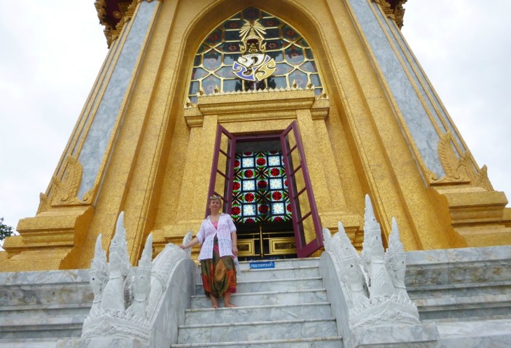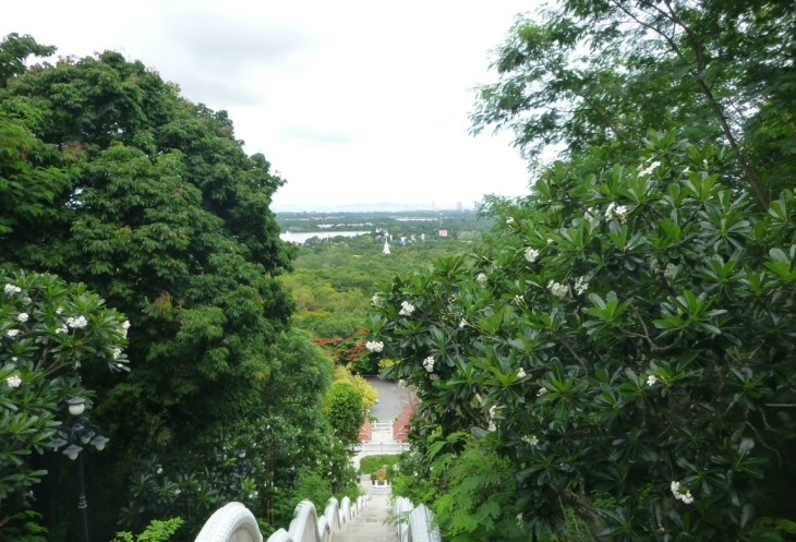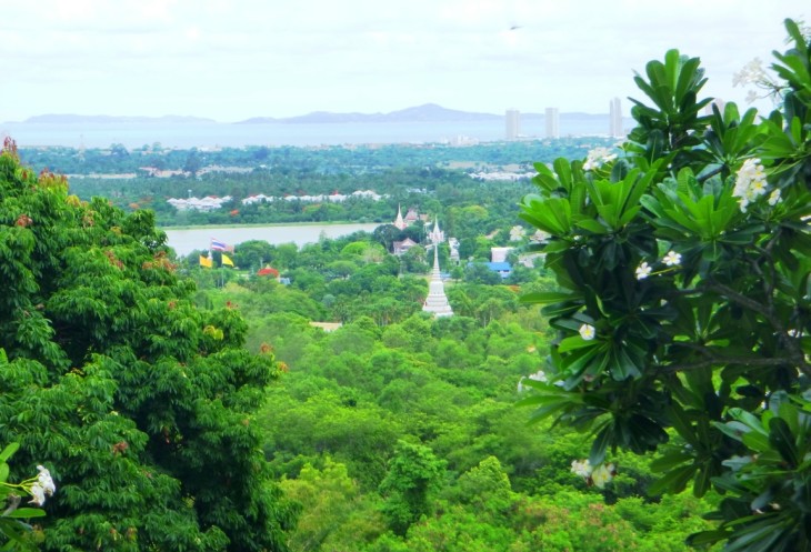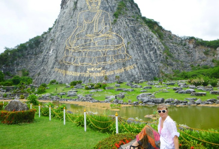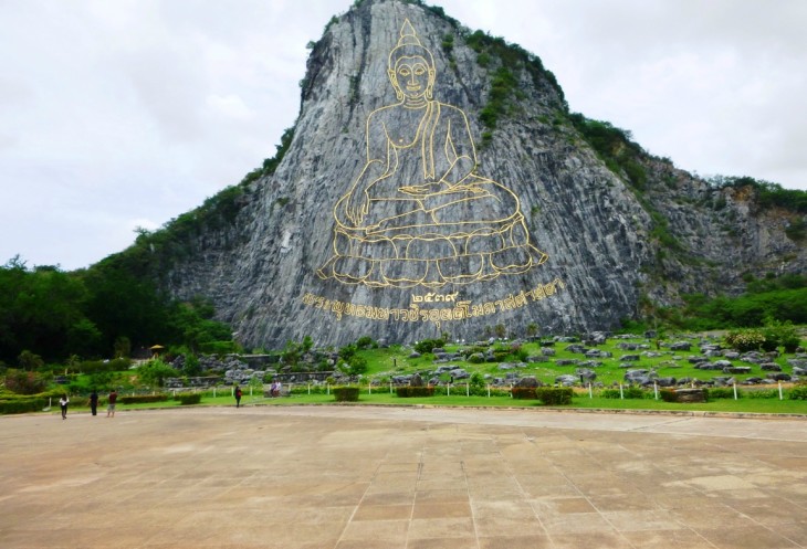 Далее наш путь лежал к горе Кхао Чи Чан с образом сидящего Будды. Самое большое в мире изображение медитирующего Будды высотой около 160 метров выложено пластинами чистого золота.