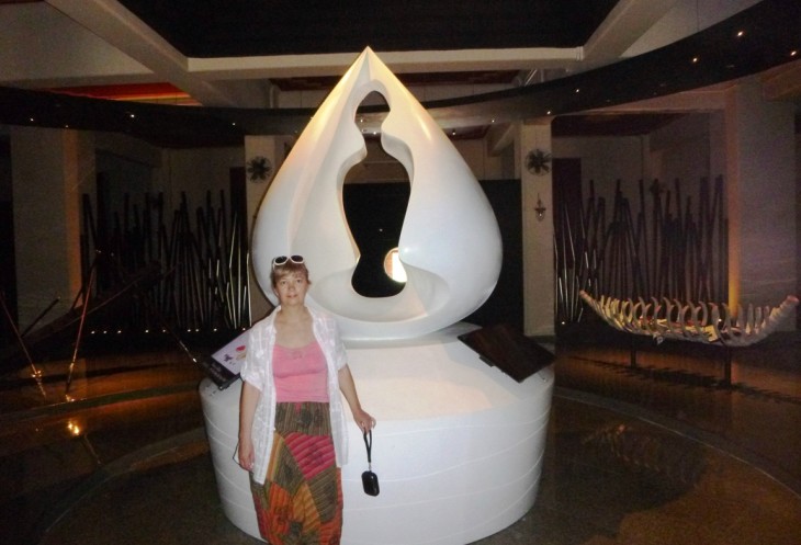 Вход туда бесплатный, но на входе в специальный журнал записали наши имена, даты рождения и страну, из которой мы прибыли. Доступен только музей на первом этаже, представляющий собой некую помесь советского краеведческого музея с галереей авангарда и выполненный в футуристическом стиле.