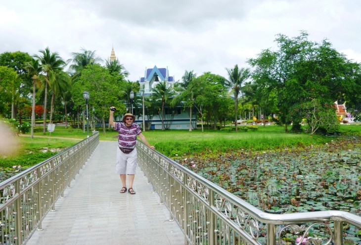 По местной традиции, для очищения кармы, можно покормить сомов в озере, с берега которого открывается чудный вид – водная гладь, а на другом берегу – беседки и павильоны выстроенные в архитектурном стиле разных стран.