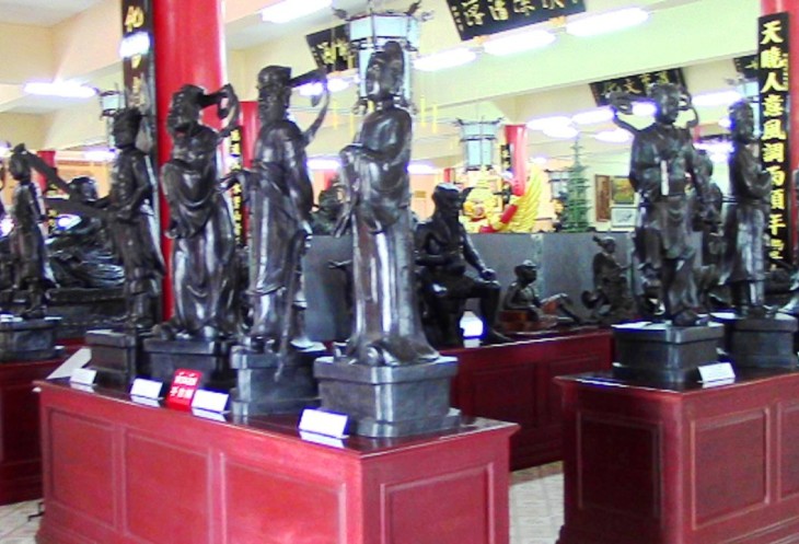 На открытой большой веранде второго этажа застыли фигуры монахов-воинов из монастыря Шао Линь. Помимо скульптур воинов в храме представлено большое количество экспонатов религиозного плана, глиняных, бронзовых изделий и много других уникальных предметов.