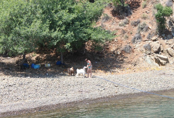 Заехали купаться к одному из островов. Там, под раскидистым деревом, паслись несколько козочек.