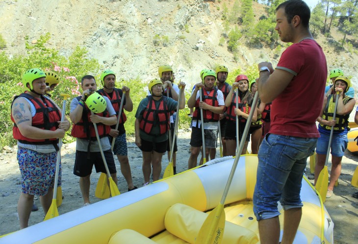 Отступление. Позже, в Олимпосе, мы познакомились с молодой женщиной, которая с 12-летним сыном там отдыхали. Они тоже брали рафтинг, но сплавлялись в районе Анталии где-то. Я была сильно удивлена, что её малолетний сын тоже принимал участие в данном мероприятии. На «нашем» рафтинге до 16 лет участие детей строго запрещалось, с 16 до 18 лет – по усмотрению инструктора. А потом я ей рассказала, что нам на берегу проводили инструктаж, с имитацией того, что мы должны делать по команде рулевого, что нам рассказывали и показывали, как себя вести, если упадёшь за борт, показывали спасательные средства и дали еще некоторую полезную информацию. Пришла её очередь удивляться. Правда, потом я на видео своего интернетовского друга посмотрела ту реку (не думаю, что в районе Анталии имеется много рек для рафтинга), скорее всего она самая и была у них в программе. Наша река была более серьёзная и быстрая. Но факт остается фактом – подготовка к сплаву у нас была серьёзней.