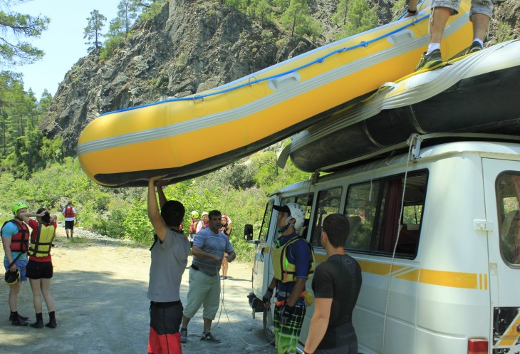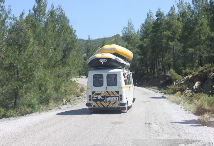 Наши плоты водрузили на микроавтобусы (другие, не те, на которых мы ехали до базы).