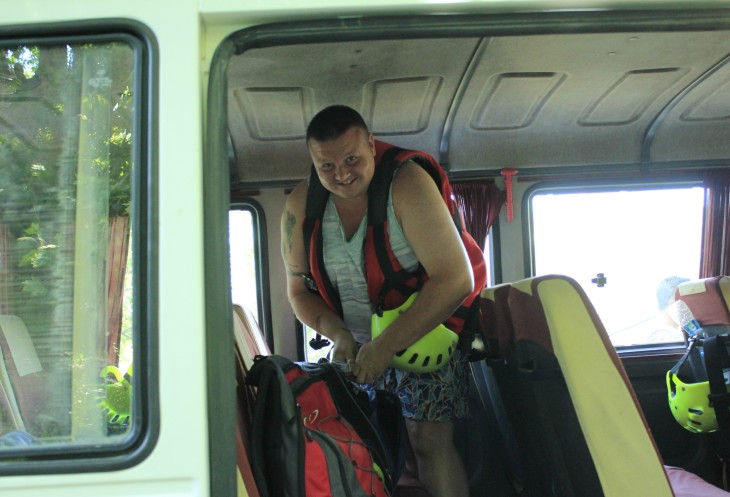 Сразу после завтрака подъезжает миниавтобус, который должен доставить меня к месту сплава. По крайней мере, я так думала. Подосвиданькались с мужем, пожелав друг другу приятного времяпровождения, и я отправляюсь в дорогу. К сожалению, места около водителя уже заняты англоязычной парой, поэтому прохожу в салон, где, кроме меня, еще находится семейная пара из Польши. Познакомились: Марик и Беата.
