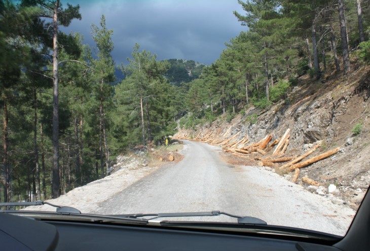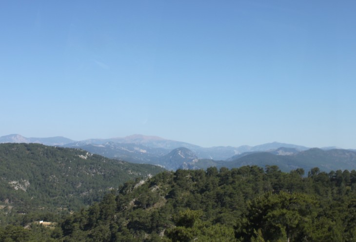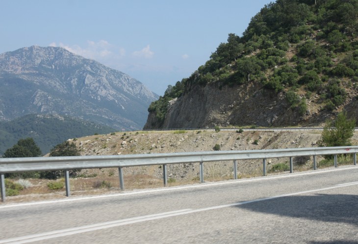 Поражает великолепие горных массивов. Получается, что мы от моря «ушли» строго на восток и как раз попадаем в горную местность. Местами мне кажется, что они по высоте мало уступают горе Тахталы, которая «живёт» районе Кемера!