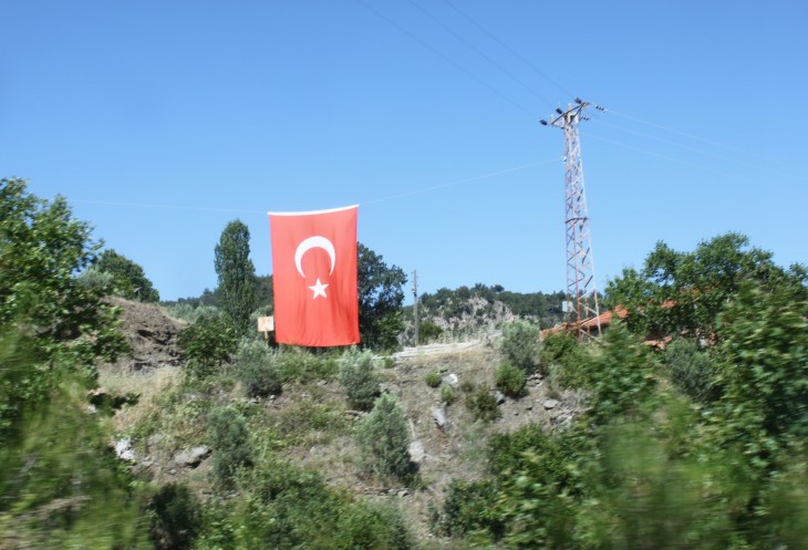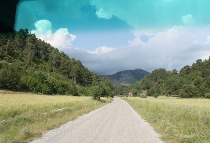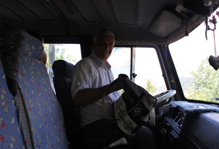 В салоне играет турецкая народная музыка, наш водитель в такт ей пританцовывает, иногда выдает пассы одной рукой, другой пальцами постукивая по рулю, как по барабану.
