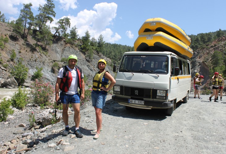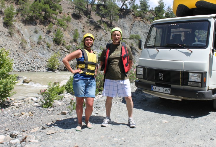 Они живут недалеко от границы с Западной Украиной, и Беата чуть-чуть знает русский язык, поэтому получилось немного поговорить. Они в Фетие уже вторую неделю, просто отдыхают, это их первый выход за пределы отеля. Так же, как и у меня, рафтинг у них будет впервые. Марик – само спокойствие, Беата очень эмоциональная женщина, признаётся, что с трудом дала себя уговорить на это мероприятие.