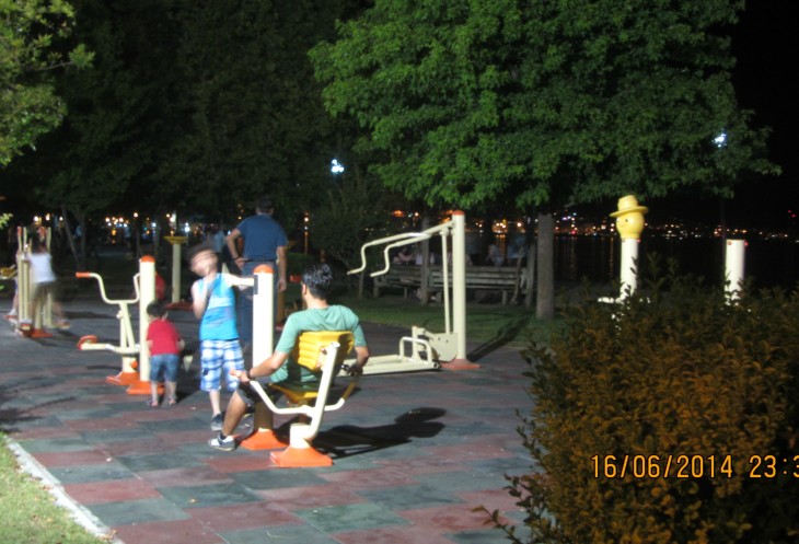 Несмотря на позднее время, очень много турецких семей в полном составе гуляют у моря, сидят в многочисленных ресторанчиках, и даже занимаются на спортивных тренажерах (явление частое практически в каждом населенном пункте страны)