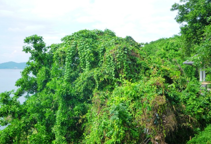 Ехали до пляжа на сонгтео минут пять по хорошей бетонке через буйные заросли явно никем не тронутой растительности.