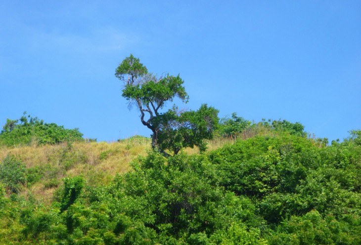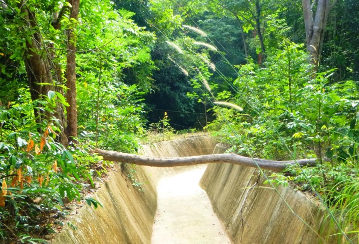 Удивительно, но мне не пришлось карабкаться по горным тропам, продираясь через непроходимые джунгли. Остров пересекает недавно построенная бетонная дорога, идти по которой было бы очень комфортно, если бы, конечно, не крутые подъемы, жара и полное отсутствие даже слабого ветерка.