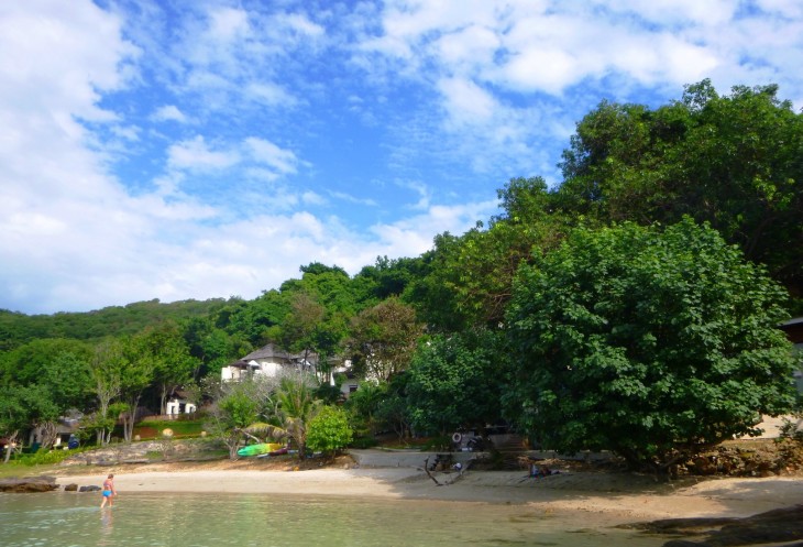 Вдоволь насладившись панорамой, я спустился к конечной точке моего маршрута, пляжу Ао Прао. Это одно из самых умиротворенных мест на острове, вдали от ночной жизни и шумных развлечений, оборудованное комфортабельными бунгало. Сам пляж очень чистый, с мелким нежным песочком. Вода в море прозрачная, вход в воду плавный, но попадаются камни.