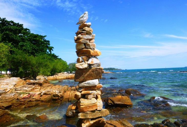 Далее, до нашего отправления с острова, день был посвящен расслабленному пляжному отдыху с небольшой прогулкой вдоль побережья, во время которой я набрел на уже знакомую со времени прошлого посещения острова композицию, состоящую из многочисленных каменных пирамидок.