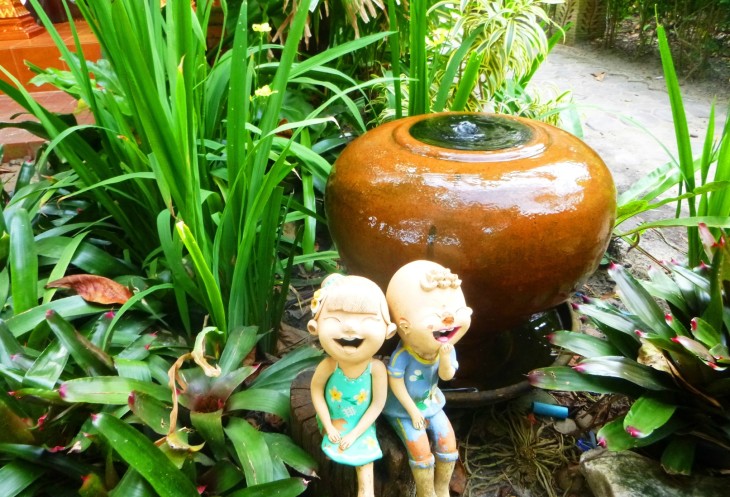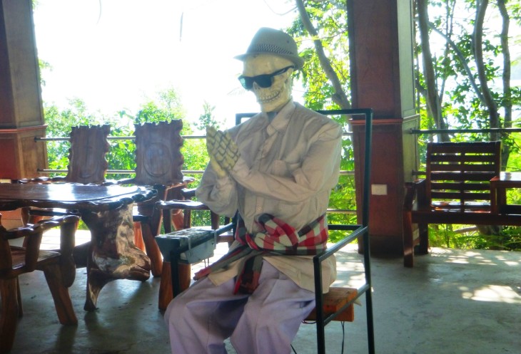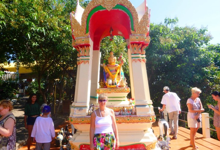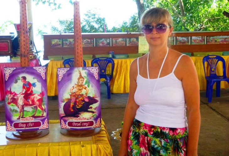Мы, конечно, загадали, ударили и теперь находимся в приятном ожидании :). Еще мы прогулялись по мини-территории храма, сфотографировались с нашими знаками китайского гороскопа и понаблюдали за механическим скелетом в костюме и шляпе, который при приближении к нему начинал совершать молитвенные движения и читать мантры.