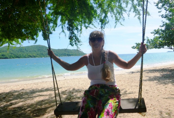 Изрядно наплескавшись в лазурных волнах и оставив супругу нежиться под лучами веселого тайского солнышка, я решил отправиться в экспедицию по неизведанным местам острова. Целью моей было пересечь остров поперек и добраться до пляжа Ао Прао на западном побережье.