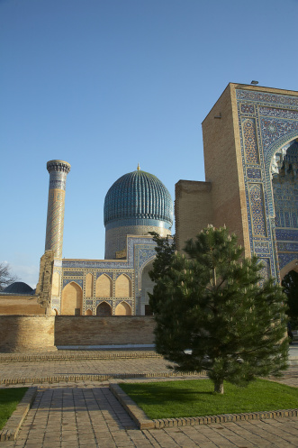 Первый на нашем пути памятник – Гур-Эмир (могила Эмира) – мавзолей, где похоронен Амир Тимур и его потомки. Место во всех отношениях легендарное – даже если бы с ним не было связано никаких особенных историй, то оно было бы одним из самых впечатляющих построек эпохи Тимуридов.