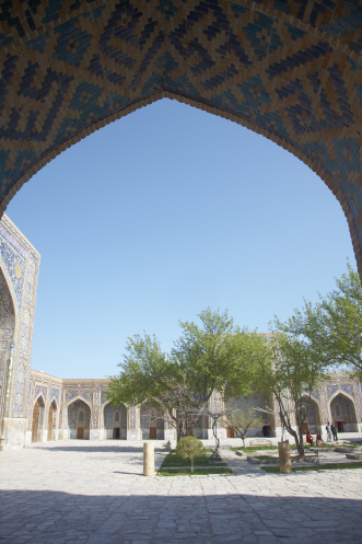 Самое древнее из трех зданий ансамбля – медресе Улугбека, построенное внуком Амира Тимура. Личностью, безусловно, неординарной: ведь он, будучи правителем в то кровавое время, не был завоевателем, а был ученым и просветителем – изучал астрономию, физику, математику, строил школы, развивал науки.
