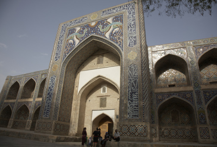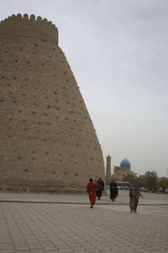 Всяких интересных мест и старых зданий в Бухаре очень много - мне показалось, гораздо больше, чем в Самарканде. Прямо вокруг Ляби-Хауз стоит целый архитектурный ансамбль – два медресе и ханака (общежитие для странствующих монахов-дервишей). Честно говоря, название меня заинтересовало больше, чем сами строения – одно медресе и ханака называются Надир-Диван-Беги. Еще одно медресе – Кукельдаш, про него я не знаю ничего, кроме того, что оно там стоит и, говорят, по вечерам в нем проходят какие-то шоу, но мы их не видели. Медресе Надира (которое про бегущий диван) интересно тем, что на его портале изображены птицы, а их, вроде бы, тоже не следует изображать правоверным мусульманам.