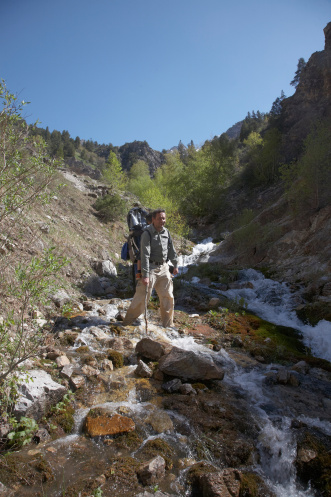 Понятно, что все эти наши обходы в сумме получились гораздо больше четырех километров и ко времени встречи с машиной мы сильно опаздывали. Мы уже смирились с тем, что машина нас не дождется и придется идти до деревни пешком по дороге, но тут из-за очередного поворота реки появляется наш водитель, да еще и не один, а с каким-то местным егерем. Они нас быстренько из реки вытащили – как раз начиналась нормальная тропа. Егерь Абдурахман (видимо, джинн) взял у меня рюкзак с Сережкой и побежал вперед, да еще и так, что сам ни разу не замочил ноги – говорю же, джинн. А мы старались не отставать от него. Так и вышли к машине.
