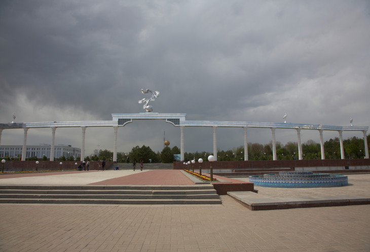 Площадь Независимости – она, видимо, на то и есть, чтобы эту независимость показывать. В центре площади скульптурная композиция, которую в народе называют не иначе как «глобус Узбекистана». Примерно так она и выглядит.
