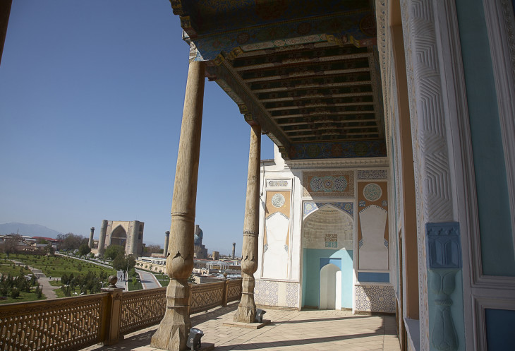 Пожалуй, самый интересный вид на площадь Регистан открывается как бы со спины, когда минареты и купола как бы переплетаются друг с другом.