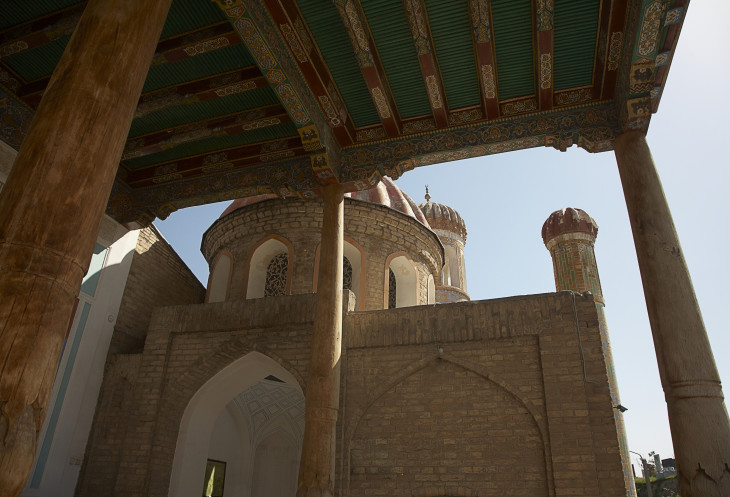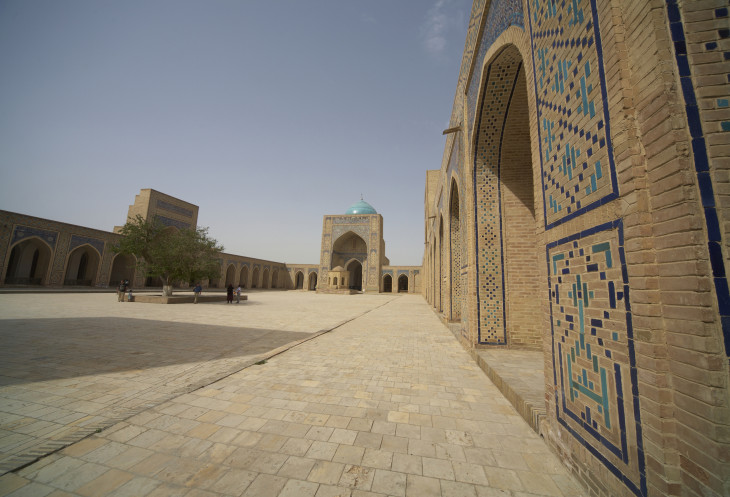 Выходим из очередного купола, которых тут множество, и попадаем к очередному архитектурному ансамблю, в существование которого я до конца не верила. Он упоминался только в одном из двух моих путеводителей, и его не было на моей карте. Однако вот они – медресе Улугбека и медресе Абдулазиз-хана. Знаменито это место, кроме все тех же синих мозаик и глазированных кирпичей, еще и тем, что это единственное медресе в Узбекистане, которое работало во времена Советского Союза.