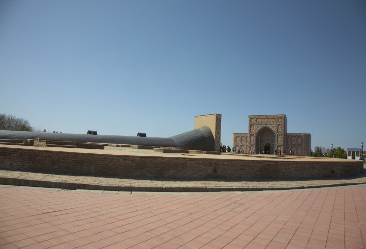 Наверное, самая удаленная от центра достопримечательность в Самарканде – обсерватория Улугбека. Про Улугбека я уже писала, что он был весьма достойным человеком и занимался всякими науками. А здесь в этом можно убедится более наглядно – желающие могут заглянуть в прибор и сделать для себя какие-нибудь астрономические открытия 15 века. Лично для меня большим открытием были размеры этого прибора: труба действительно гигантская – размером с немаленькое здание. Может, модный нынче телескоп Хаббл и не меньше, но его-то строили с использованием новых технологий, а там – все ручками.