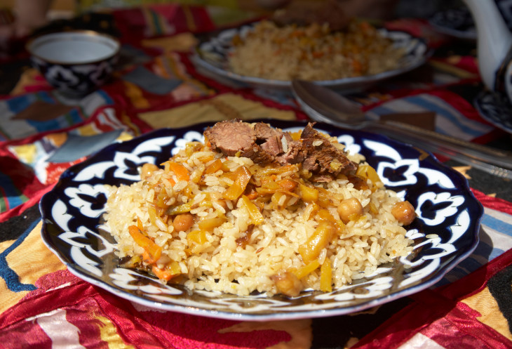 Национальная еда – это, конечно, неотъемлемая часть любого путешествия. А главным кулинарным шедевром узбекской кухни считается плов. Вот в Самарканде я с этим согласилась, хотя самаркандский плов сильно отличался от того, что мы привыкли пловом называть. Ингредиенты как-то совсем не перемешаны, морковь в каком-то соусе, а мясо как будто просто положено сверху уже после приготовления. Но это было безумно вкусно!