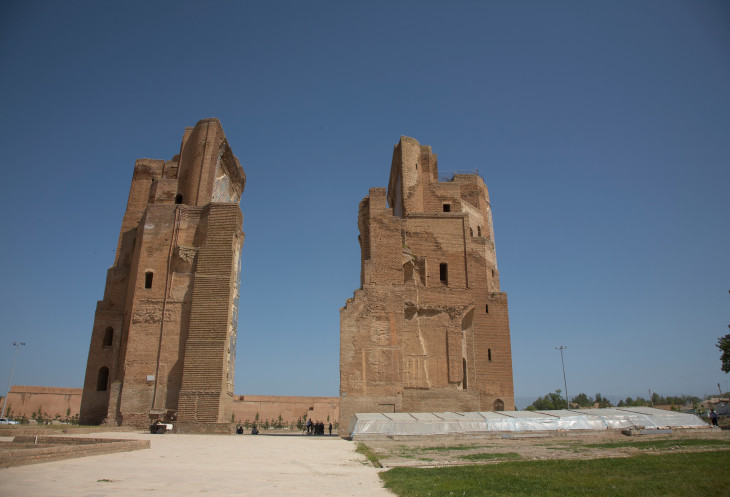 Собственно в Шахрисабзе не так много достопримечательностей. Главная – это руины Ак-Сарая – летнего дворца Тамерлана. Дворец этот не реставрирован, но в этом, несомненно, есть своя прелесть – среди старых кирпичей видны остатки мозаики. Собственно от дворца осталось две башни и даже не очень понятно, чем они были, когда были дворцом. Но уже сразу понятно, что было это чем-то потрясающим. Как говорил Амир Тимур: «Кто сомневается в нашем величии, пусть посмотрит на наши сараи», ну, дворцы по-ихнему.