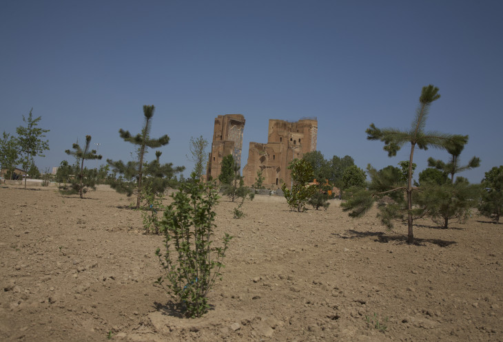 Слово «Шахрисабз» в переводе означает «зеленый город», видимо, город-сад. Ну, может, через несколько лет он и станет садом – сейчас он активно строится и облагораживается, по всему центру сажают деревья. Но пока они очень маленькие и сиротливо торчат из горячей сухой земли.