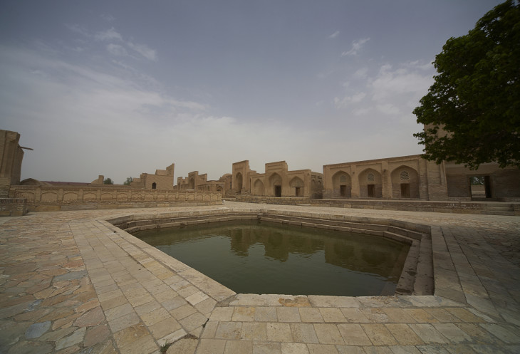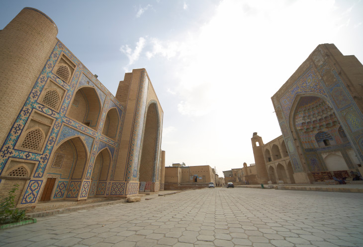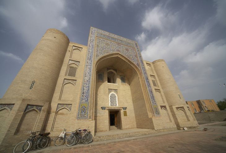 Старый центр Бухары заканчивается, появляются простые жилые кварталы и современные дома. Среди частного сектора все-таки находим Кош-Медресе, как я понимаю интересное в основном тем, что состоит сразу из двух зданий стоящих напротив друг друга.