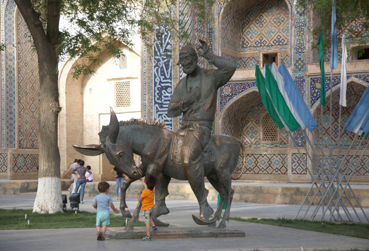 Прямо у пруда, на радость туристам, стоят забавные скульптуры – целый караван верблюдов всех размеров, а еще – Ходжа Насреддин верхом на огромном ишаке. Памятник этот пользуется большой популярностью и местами вытерт до блеска. Видимо, здесь больше всех уважают героя анекдотов.