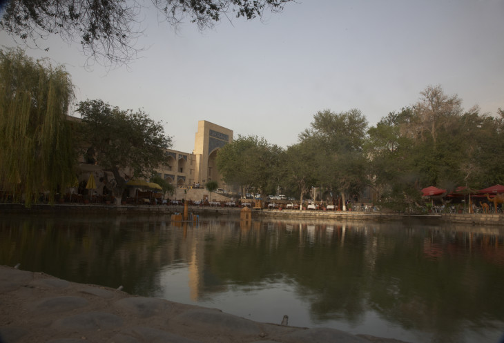 В Бухаре старый город как-то живет совсем отдельно от нового. Понятно, что он живет туристами, но нам того и надо. Центр старой Бухары – Ляби-Хауз – пруд с запасом пресной воды, а вокруг него вся жизнь.