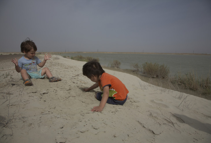 Когда места, доступные для пеших прогулок, уже закончились, мы решили взять такси и покататься по пригородам. Во-первых, когда мы ехали в поезде, из окна мы видели озеро какого-то невероятного сине-зеленого цвета. Решили первым делом ехать туда. Выяснили, что это озеро Тудакуль, как ни странно, пресное. Приехали мы туда, а света нет, поэтому вода совсем не такая, какой мы видели ее из поезда. Ну, поиграли в песочек на берегу, купаться как-то тоже холодновато было.