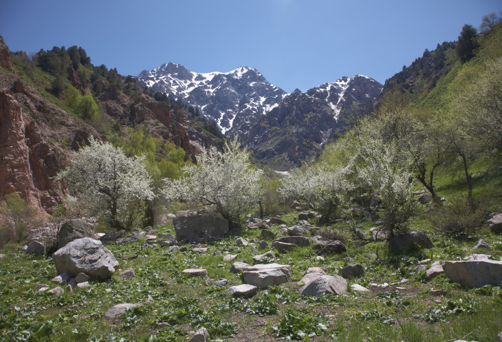 Вот приехали мы на Чарвак, а там вокруг – Чимганские горы. Самые настоящие – со снежными вершинами, крутыми скалами и цветущими лугами внизу. Да и само водохранилище очень красивое – вода в нем какого-то невероятного цвета, оттенок которого все время меняется от молочно-белого до насыщенного сине-зеленого.