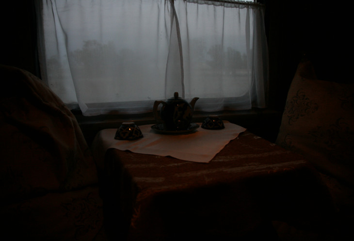 Итак, поезд везет нас обратно в Ташкент. На этот раз обычный ночной поезд, который стучит по рельсам среди бескрайней степи. А над поездом махровый купол звездного неба – удивительно яркого и близкого. Хотя поезд тоже не совсем привычный – мы решили воспользоваться дешевизной узбекских поездов и взять места в вагоне СВ, чтобы хоть посмотреть, что это такое. Узбекский СВ не сильно отличается от привычных нам купейных вагонов, разве что полок не четыре, а две, а еще на столе стоит чайник и пиалы, а больше никакой люксовости. Ну и ладно – ехать-то совсем мало.