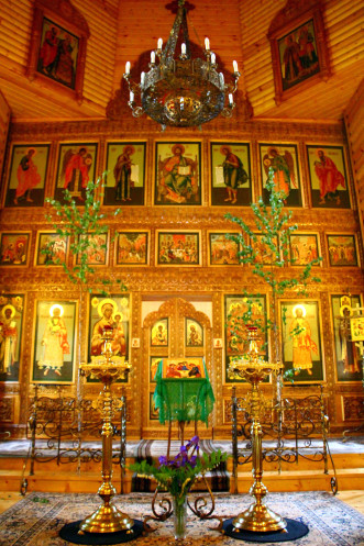 Праздник начался в 12-45 прямо у самого входа на поляне. Сначала свщенник из Христорождественского храма отслужил праздничный молебен, а потом началась праздничная программа. Прямо на этой поляне устроили хороводы и игры под народную музыку с песнями. Мы немного послушали и пошли дальше, посмотреть хотелось все.