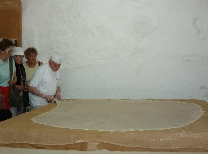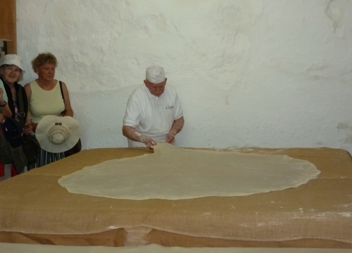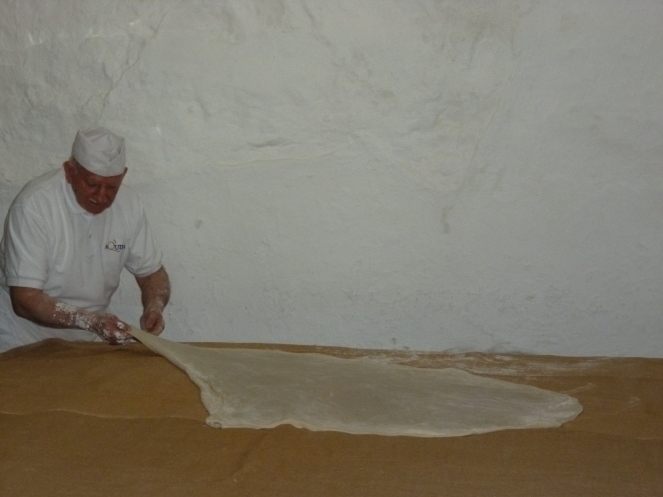 Заглянули осторожно… В глубине зала он – мастер, заботливо укутывает тончайший пласт теста грубым холстом. Поднял глаза, поздоровался, кого-то позвал. Вышедший к нам мужчина оказался сыном Гиоргоса.