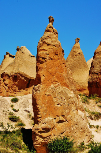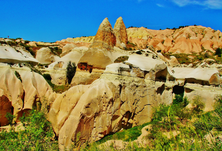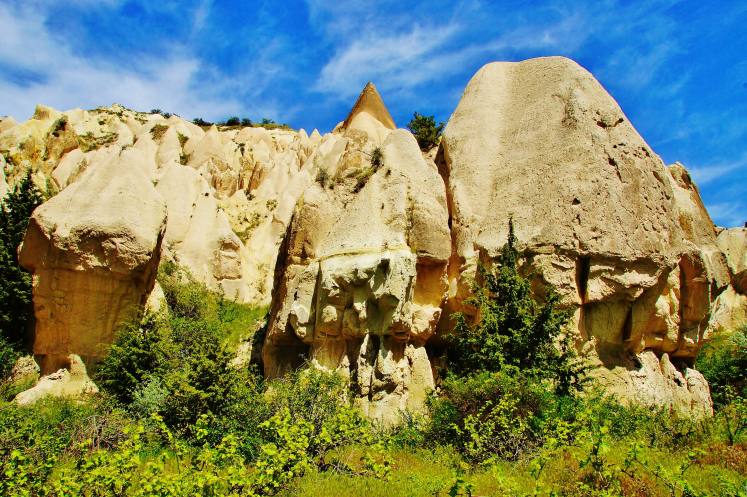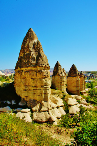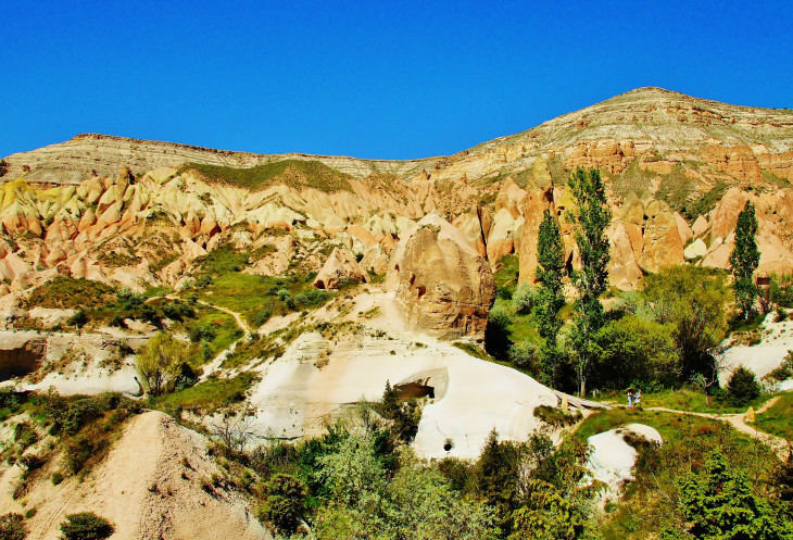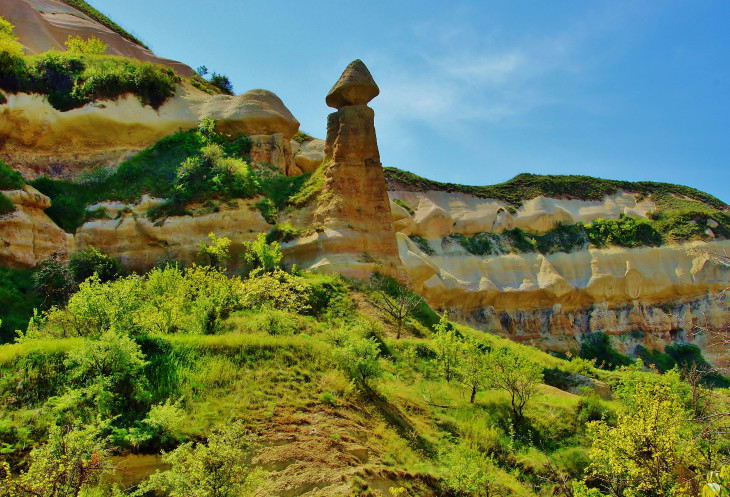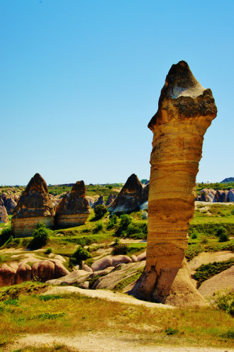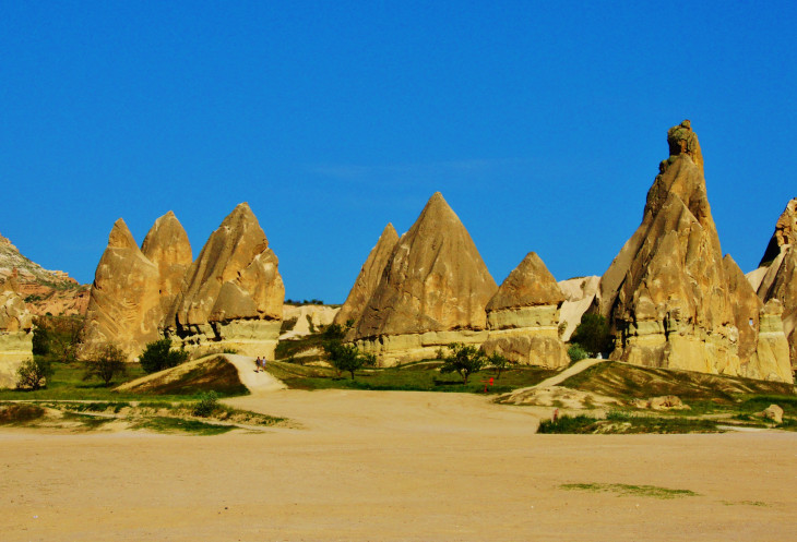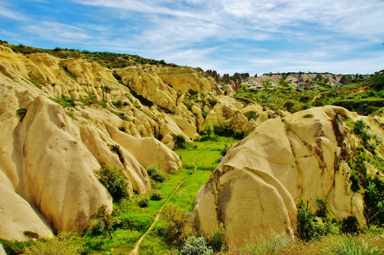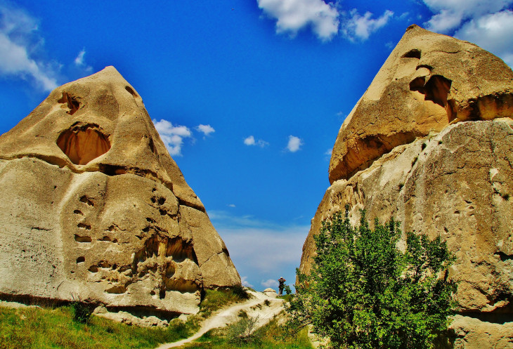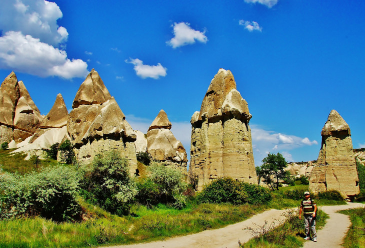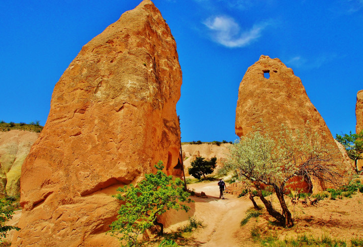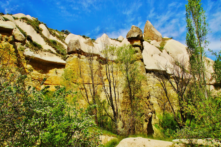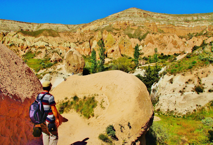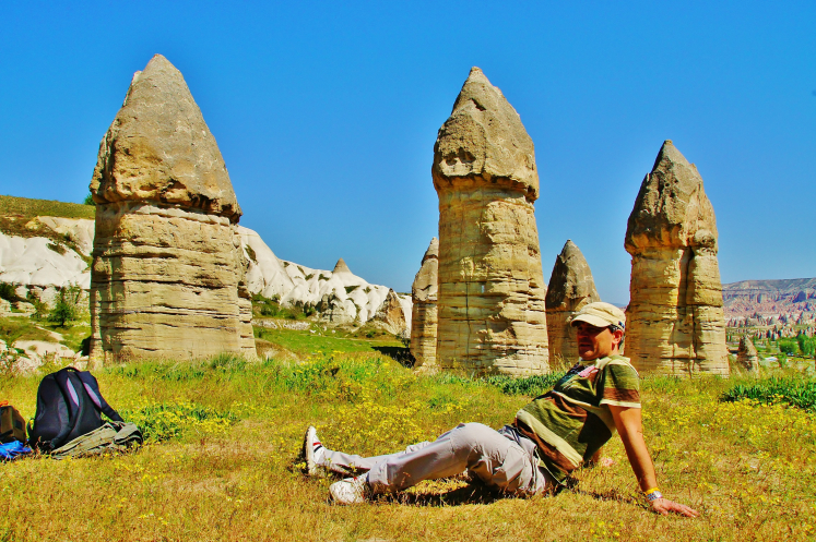 В день приезда у нас был запланирован самый короткий из походов – по долинам Zemi и Görcelid. Как оказалось, чтобы попасть в долину Görcelid, нам было нужно просто подняться на вершину холма и спуститься с другой его стороны. Мы же, строго следуя инструкции, потащились в обход через весь поселок. Оказавшись, наконец, в долине Görcelid, мы застряли там надолго, прогуливаясь вокруг ее каменных столбов.
